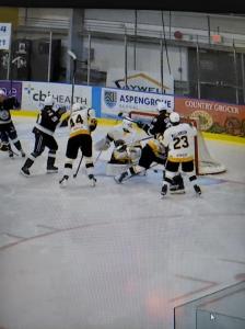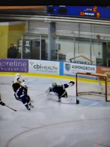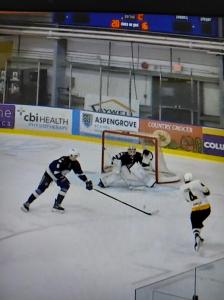 The winning goal came early in the extra period. Haden Parker left the puck at the top of his own circle for Cameron Collins and he did the rest. The 18 year old Comox native went end to end splitting between two defenders inside the offensive blue line and beat Bylerius up high with a backhand shot to make the final 3-2.